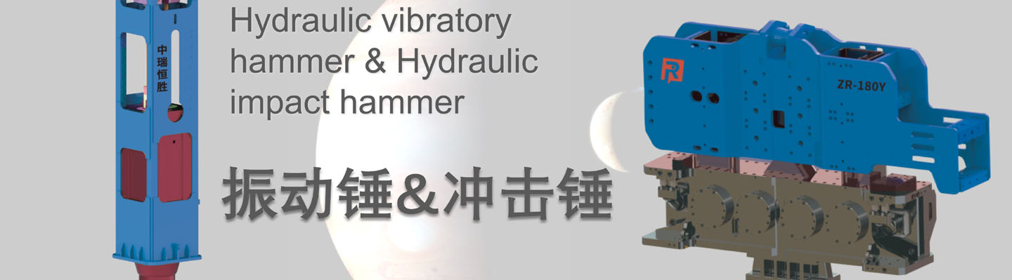 我司液压冲击锤属于冲击式打桩锤,按其结构和工作原理可分为单作用式和双作用式两种。所谓单作用式是指冲击锤芯通过液压装置提升到预定高度后快速释放,冲击锤芯以自由落体方式打击桩体;双作用式是指冲击锤芯通过液压装置提升到预定高度后,从液压系统获得加速度能量来提高冲击速度而打击桩体。这也分别对应着两个打桩理论,单作用液压打桩锤对应重锤轻打理论,以较大的锤芯重量、较低的冲击速度、较长的锤击作用时间为特点,桩锤每击贯入度大,适应各种形状和材质的桩型,损桩率低,尤其适合打混凝土管桩。双作用液压打桩锤对应轻锤重打理论,以较小的锤芯重量、较高的冲击速度、较短的锤桩作用时间为特点,冲击能量大,最适合打钢桩。